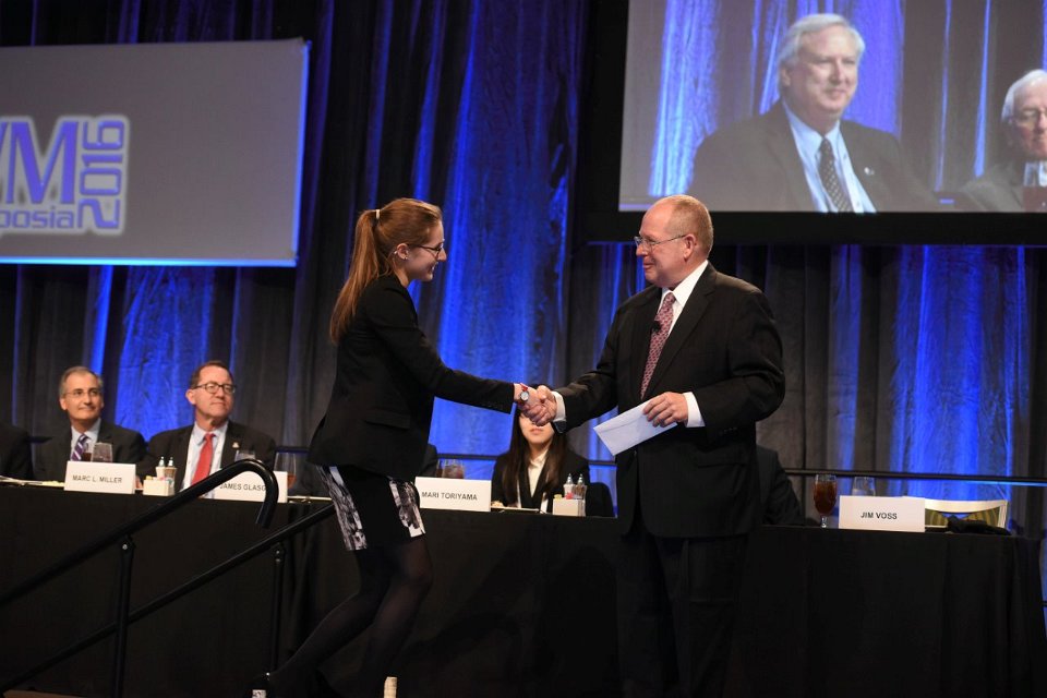 3 James Voss awarding $500 Cash to Student Poster Winner, Hannah Paterson