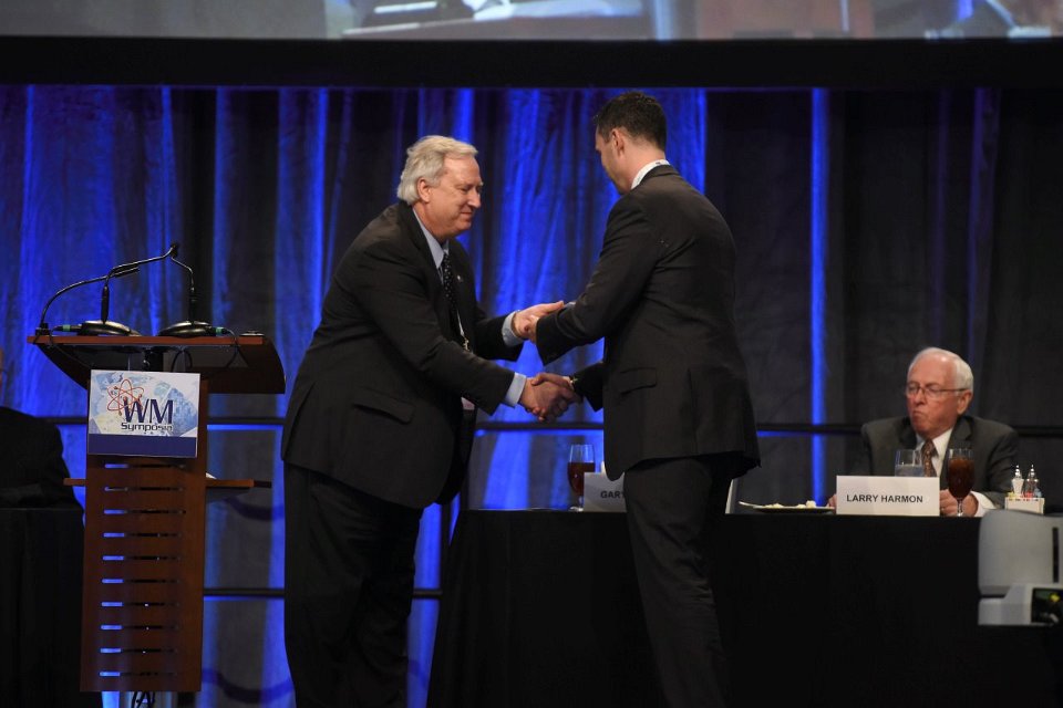 12 Mr. Tom Kalinowski, Chair of the ASME Radwaste Systems Committee and Vice President of DW James Consulting, presenting the WMS/Sarge Ozker Award