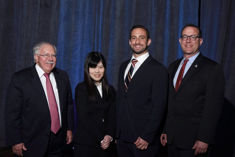 21 James Glasgow (far left) with the James A. Glasgow Scholarship Recipients, Mari Toriyama and Richard McManus. Also pictured on far right, Dean Marc Miller from University of Arizona, James E. Rogers College of Law