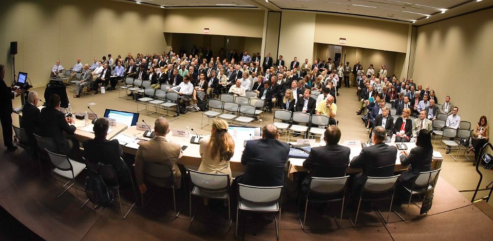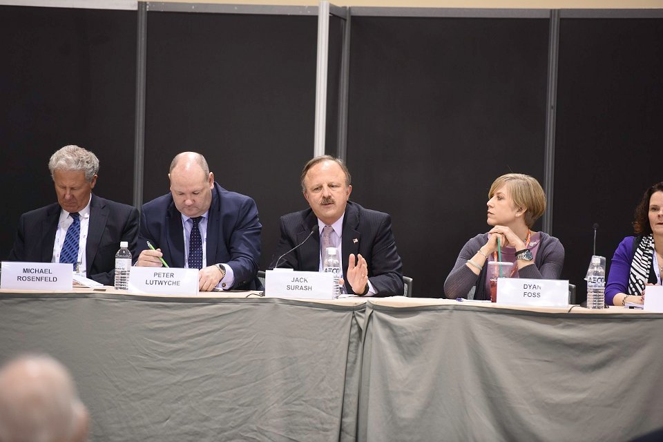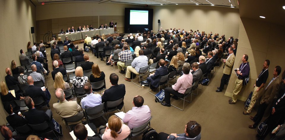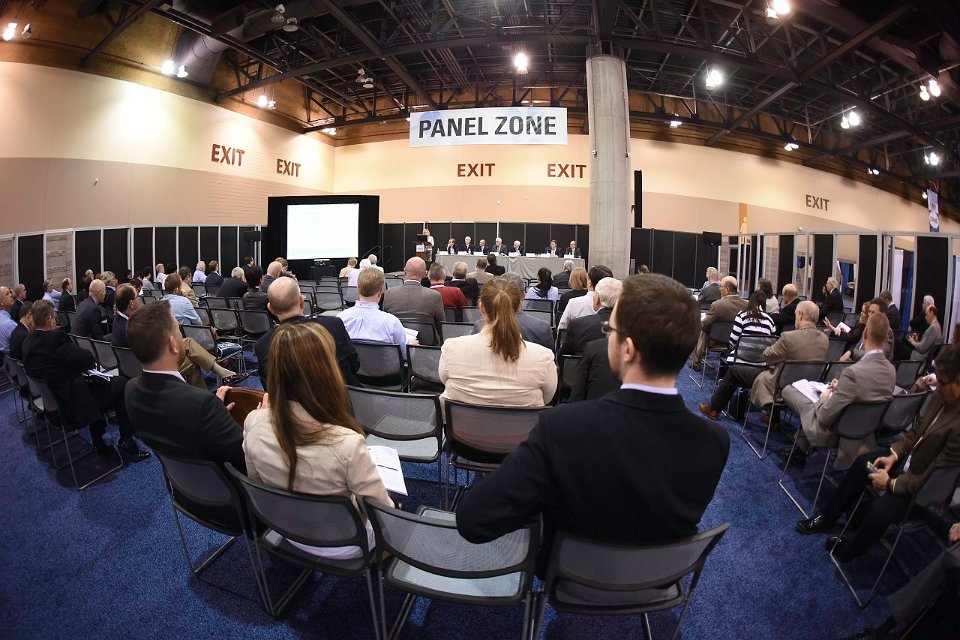 133 Panel Session  View from Panel Head Table 134 Panel Session  Panel Session on Show Floor in Exhibit Hall 135 Panel Session  Panel Session on Show Floor in Exhibit Hall 136 Panel Session  Panelists at Head Table during Panel Session in Exhibit Hall