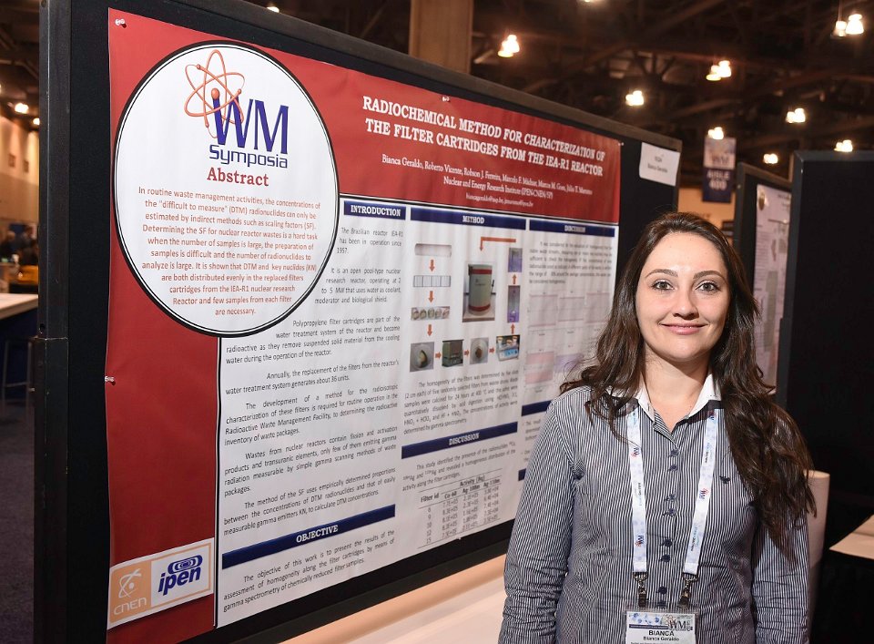 8 Student Poster: "Radiochemical Method for Characterization of the Filter Cartridges from the IEA-R1 Reactor", Bianca Geraldo (pictured), Nuclear and Energy ResearchInstitute - IPEN/CNEN-SP (Brazil); Marcos Goes Maciel, Instituto de Pesquisas Energéticas e Nucleares - IPEN-CNEN/SP; Roberto Vicente, Júlio Takehiro Marumo, Robson de Jesus Ferreira, Marcelo Francis Máduar, Nuclear and Energy Research Institute