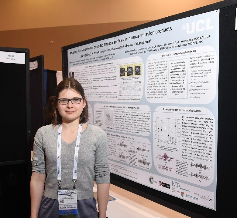 10 Student Poster: "Modelling the Interaction of Corroded Magnox Surfaces with Nuclear Fission Products", Eszter Makkos (pictured), Nikolas Kaltsoyannis, University College London; Andrew Kerridge, Lancaster University; Jonathan Austin, National Nuclear Laboratory