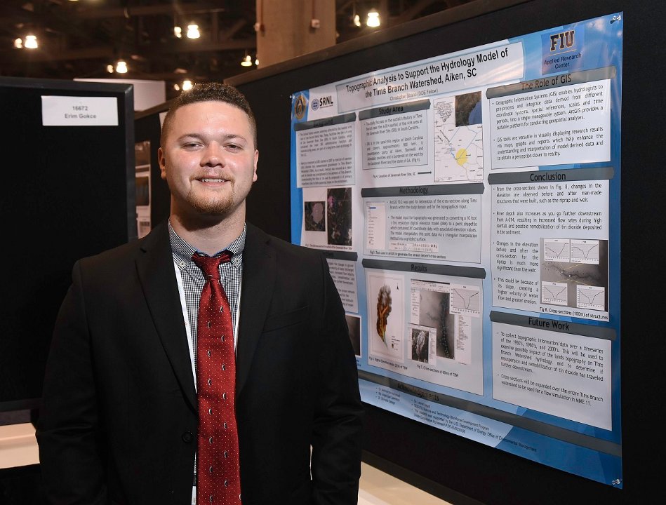 20 "Student Poster: "" Topographic Analysis of Time Series Data to Support the Hydrology Model of the Tims Branch Watershed, Aiken, SC"" Christopher Strand (pictured), Mehrnoosh Mahmoudi, Angelique Lawrence, Shimelis Setegn, Applied Research Center - FIU"