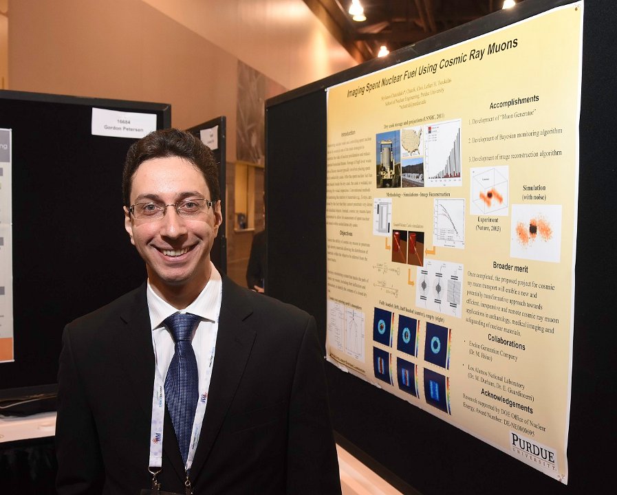 31 "Student Poster: ""Imaging Spent Nuclear Fuel using Cosmic Ray Muons"", Stylianos Chatzidakis (pictured), Chan Choi, Lefteri Tsoukalas, Purdue University"