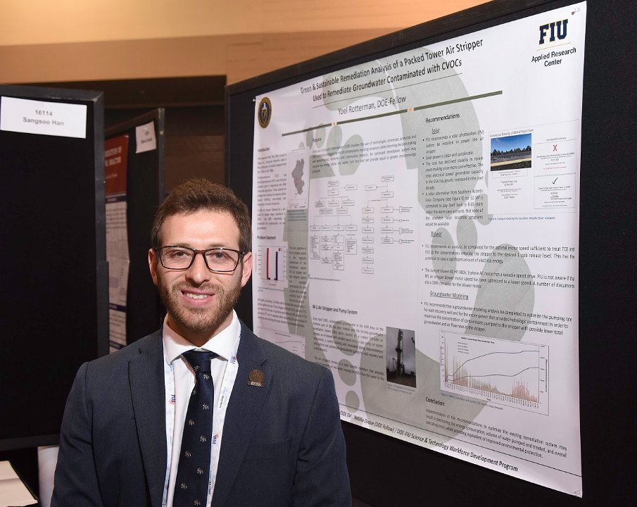 5 Student Poster: "Green & Sustainable Remediation Analysis of a Packed Tower Air Stripper Used to Remediate Grondwater Contaminated with CVOCs", Yoel Rotterman (pictured), US DOE; David Roelant, Applied Research Center-FIU; Ralph Nichols, Savannah River National Laboratory