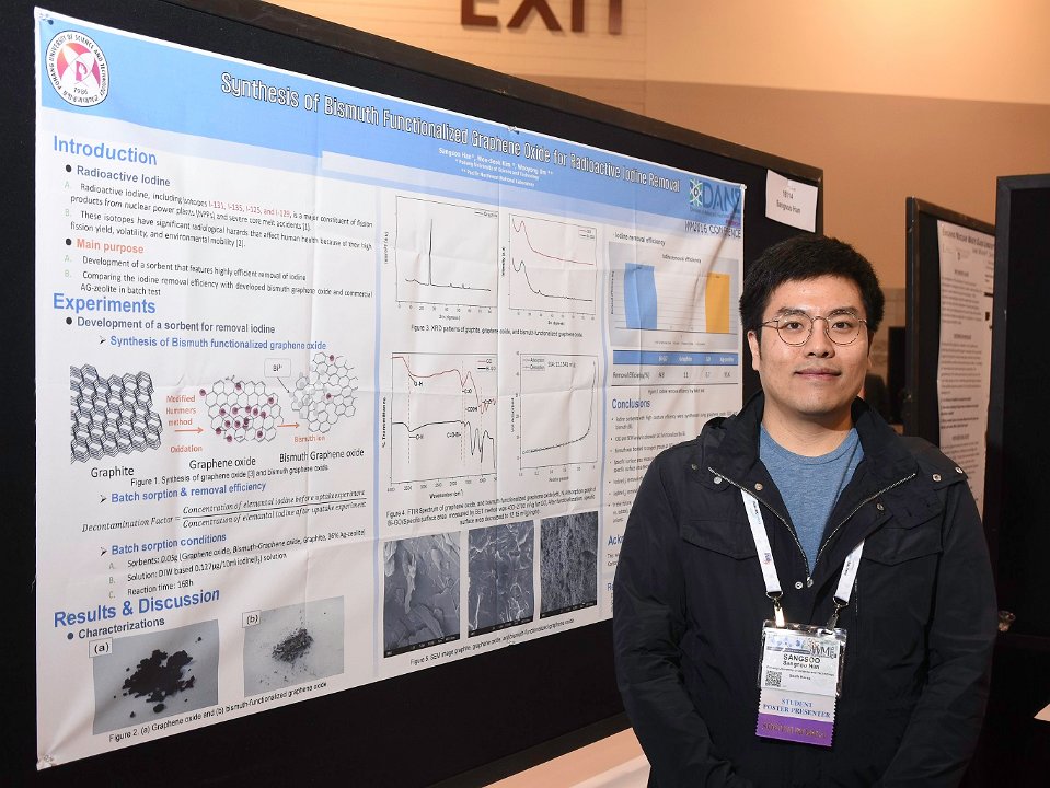6 Student Poster: " Synthesis of Bismuth Functionalized Grapheme Oxide for Radioactive Iodine Gas Removal", Sangsoo Han (pictured), Pohang Universtiy of Science and Technology; Wooyong Um, Pacific Northwest National Laboratory; Won-Seok Kim, Pohang University of Science and Technology